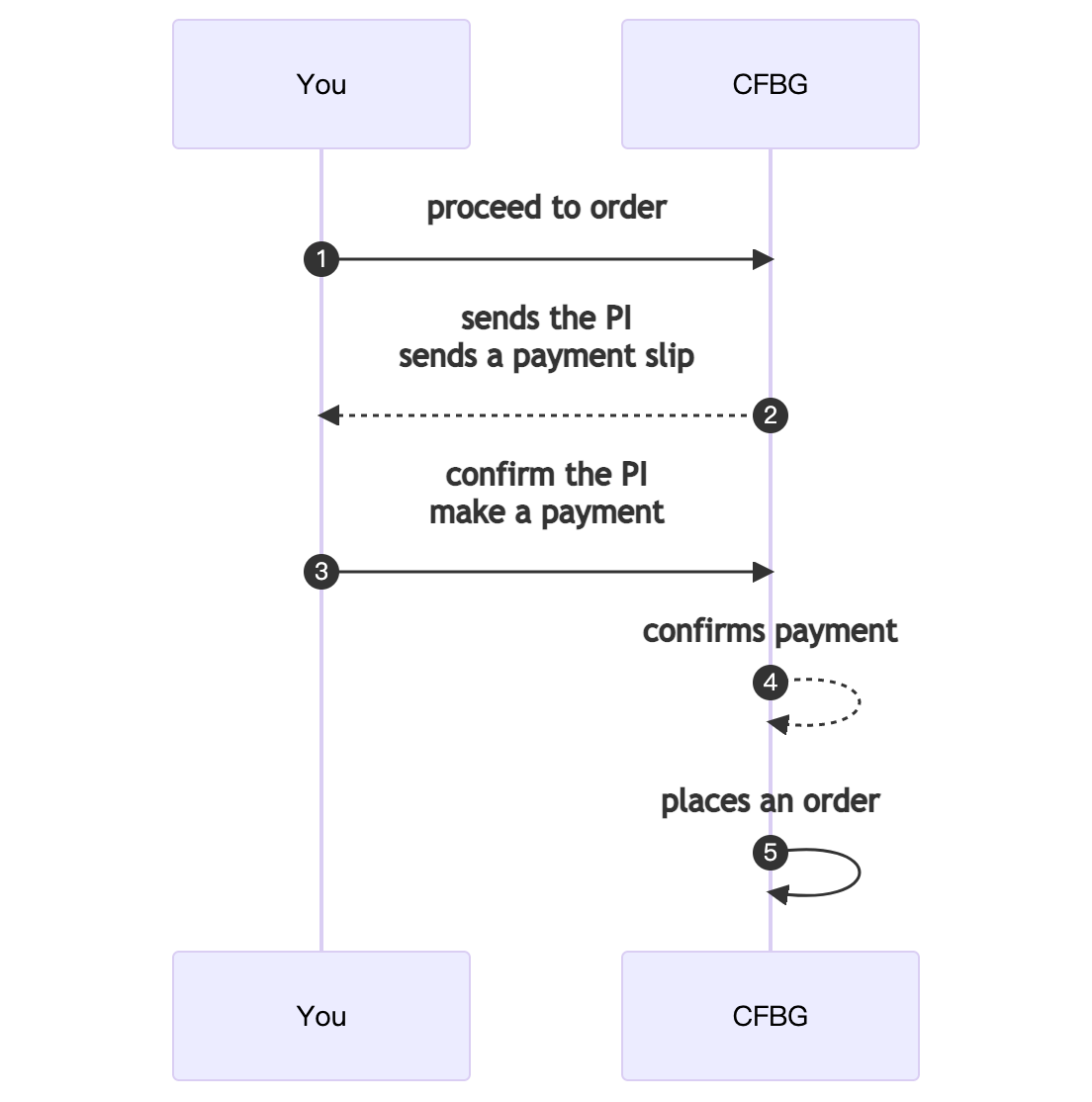 Once you decided to proceed with the order, our sales representatives will send you an official proforma invoice(PI), followed by a payment slip if you wish to check out via the Alibaba marketplace, or via the bank with the given banking detail in the PI. The order will then be placed when we confirmed your payment.