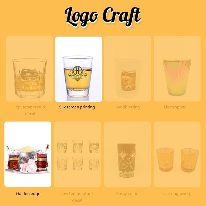 Interestingly enough, gold printing is a logo processing technique that does not actually involve any printing but painting. The gold “paint” is a chemical compound mixed in proportions. When the glasses are out of the furnace and are cooled down, technicians start painting directly in circles around them to form the so-called gold brim before putting them back into the furnace for another round of firing. The gold print will now be adhesive and permanent on the glasses when they are out and cooled again, finalizing your product into ideal and luxury.