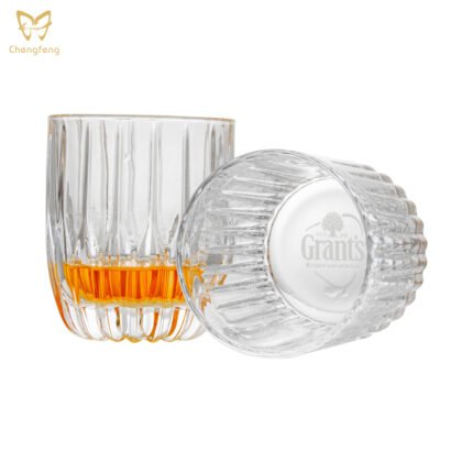 WG1003 OEM Custom Logo / 8oz Striped Fluted Round Whiskey Glass
