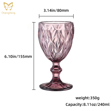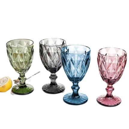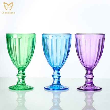 WG-1112 10 Ounce Red Wine Glasses Color Stemmed Glassware Embossed Water Goblets