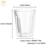 Superior Temperature Control & Comfort: The innovative double wall insulation keeps hot drinks hot without burning your hands and cold drinks chilled without condensation. No more wet rings on your table! Extreme Durability & Heat Resistance: Made from high borosilicate glass, this cup is highly resistant to thermal shock. Safely pour boiling water or move it from freezer to microwave without risk of breakage (Note: always check specific care instructions). Crystal Clear Elegance & Purity: The brilliant clarity showcases the true color and carbonation of your craft beer, the rich layers of your espresso, or the beauty of your fine whiskey. It doesn’t retain odors or flavors. Multi-Functional & Space-Saving: One glass for all occasions! Perfect as a beer mug, coffee cup, shot glass, rock glass, or highball glass. Its ideal 8 oz (240ml) capacity is great for servings of ale, latte, spirits, iced tea, juice, or desserts. Sturdy & Ergonomic Design: Featuring a solid base and a comfortable feel, the glass is stable and easy to hold. The smooth rim provides a perfect sip every time. Easy to Clean & Dishwasher Safe: Designed for convenience, it cleans easily by hand or is dishwasher safe for effortless maintenance.