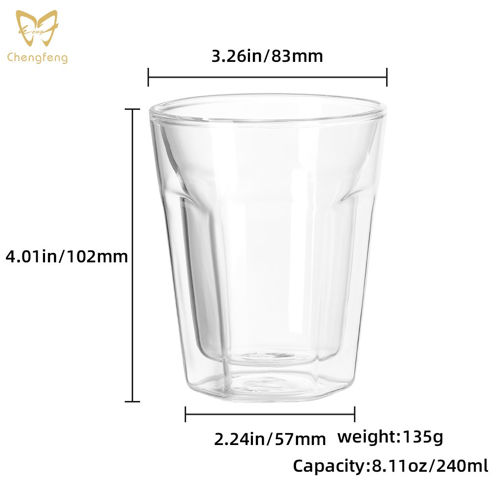 Product Name | 8 oz Double Wall Glass Beer Mug Coffee Cup Shot Glasses Rock Glass High Borosilicate Highball Glass |