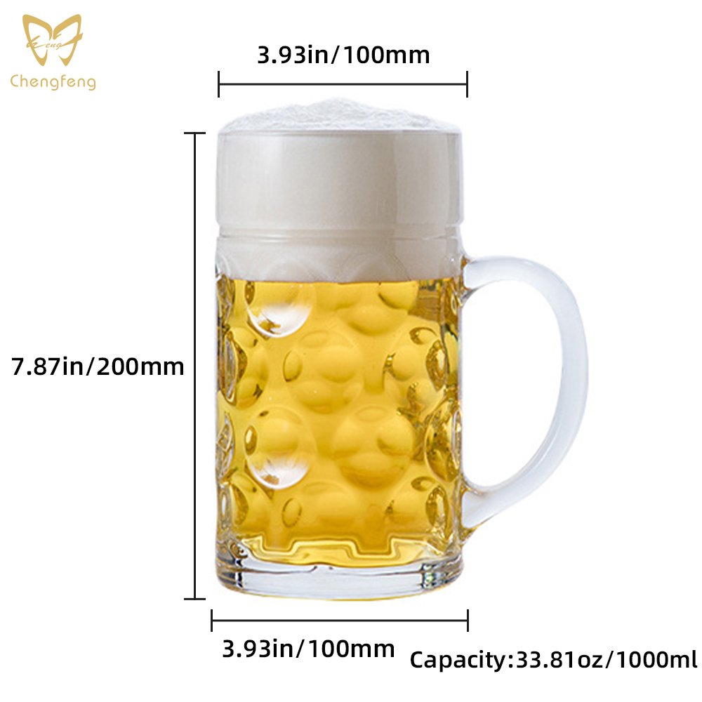BG1251 1 Liter 0.5 Liter Dimpled Glass Beer Stein