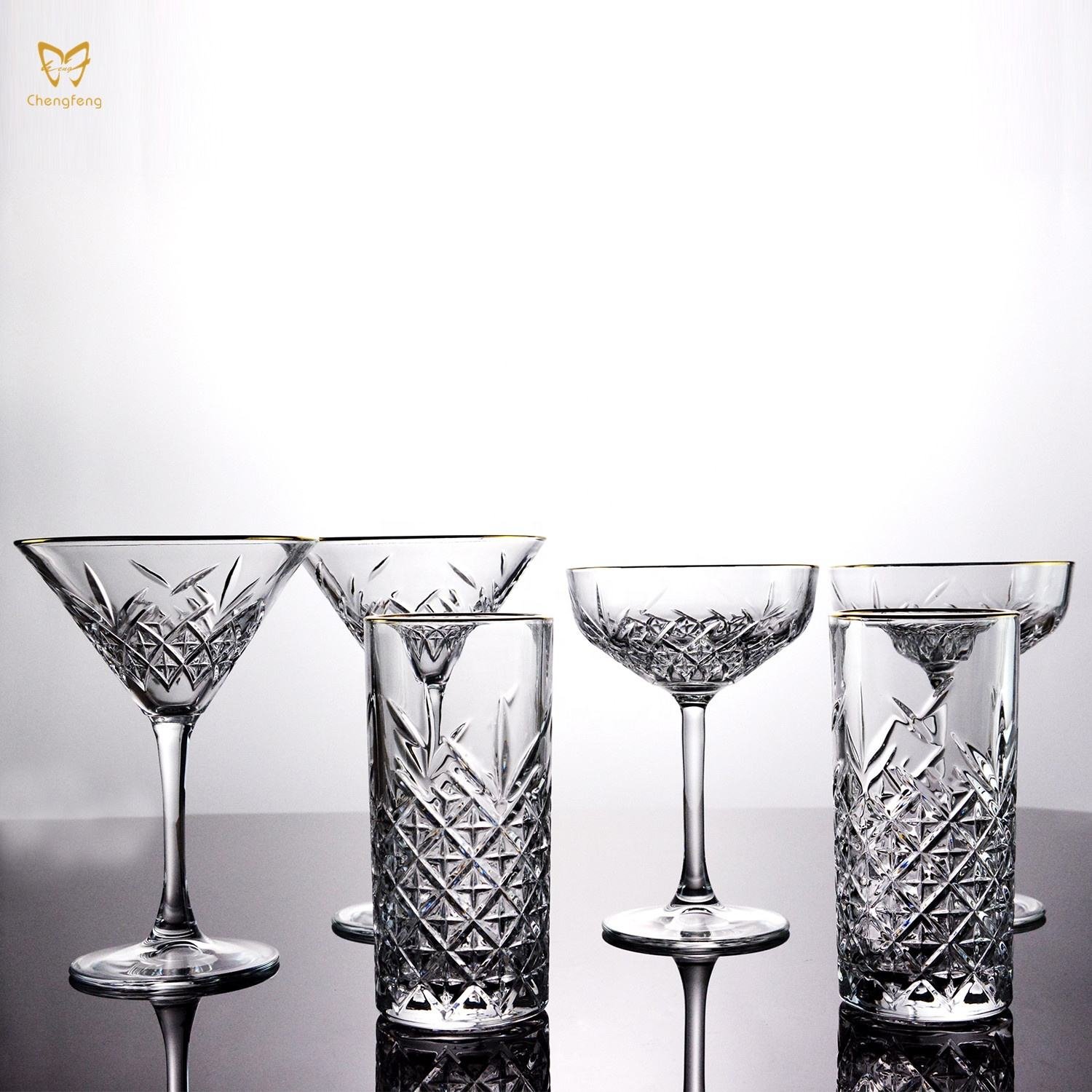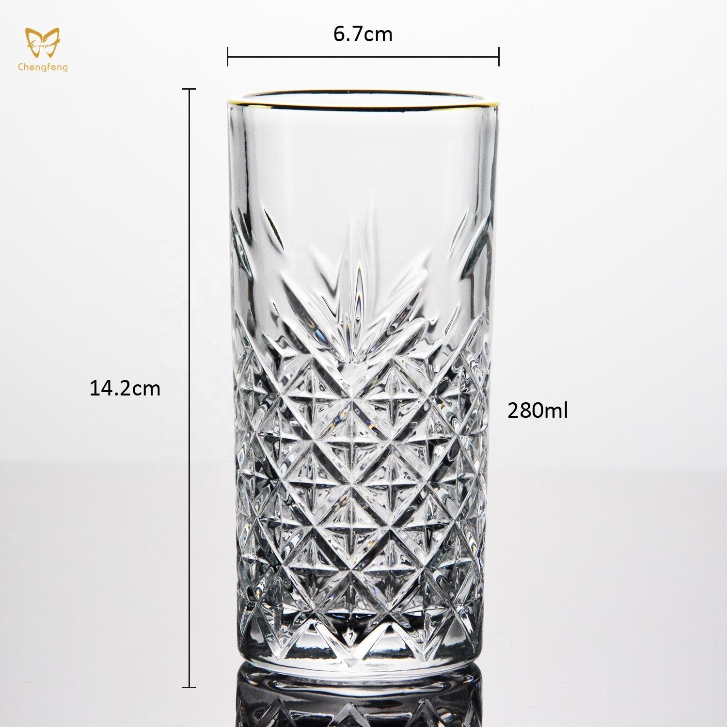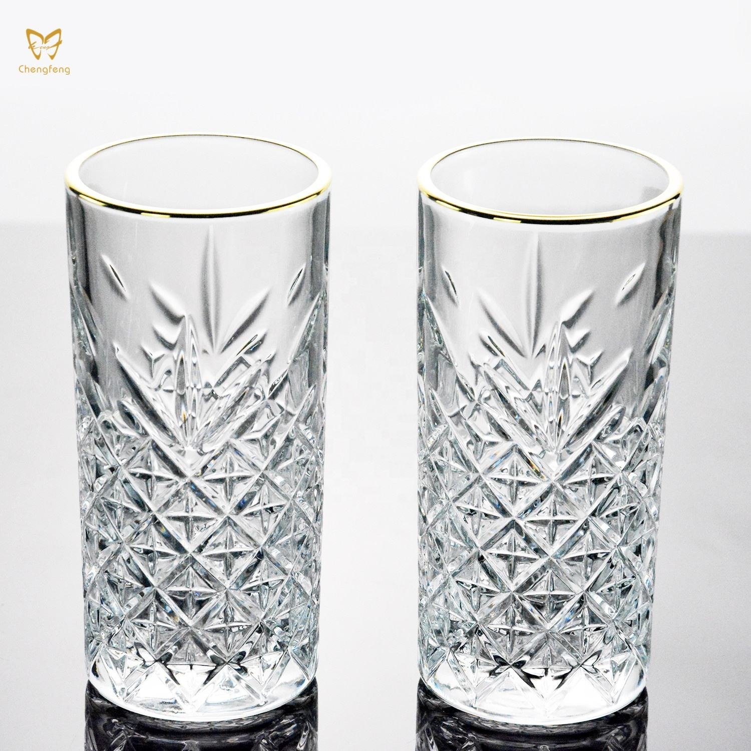GT1325 Gold Rim Crystal Whisky Cocktail Glasses Carved