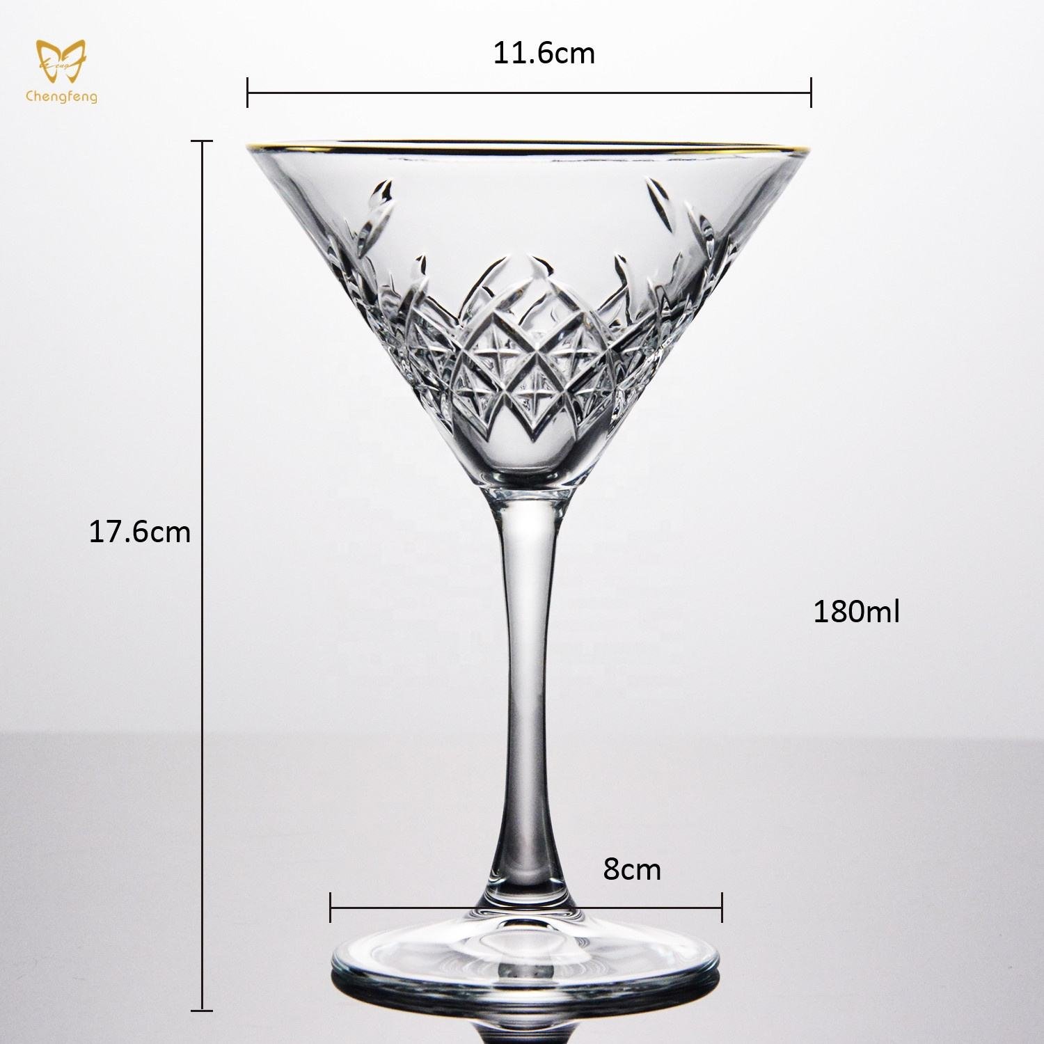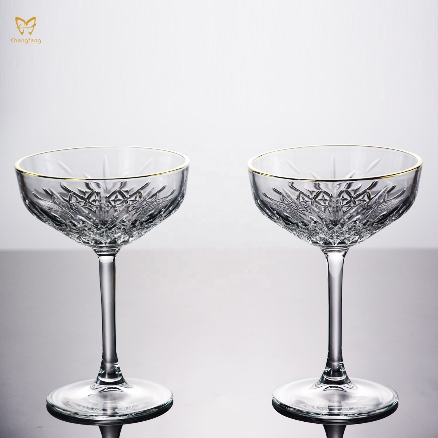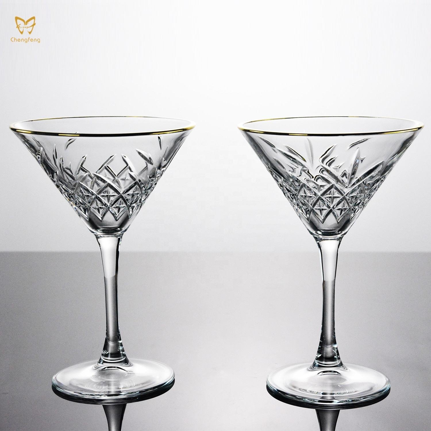 GT1325 Gold Rim Crystal Whisky Cocktail Glasses Carved