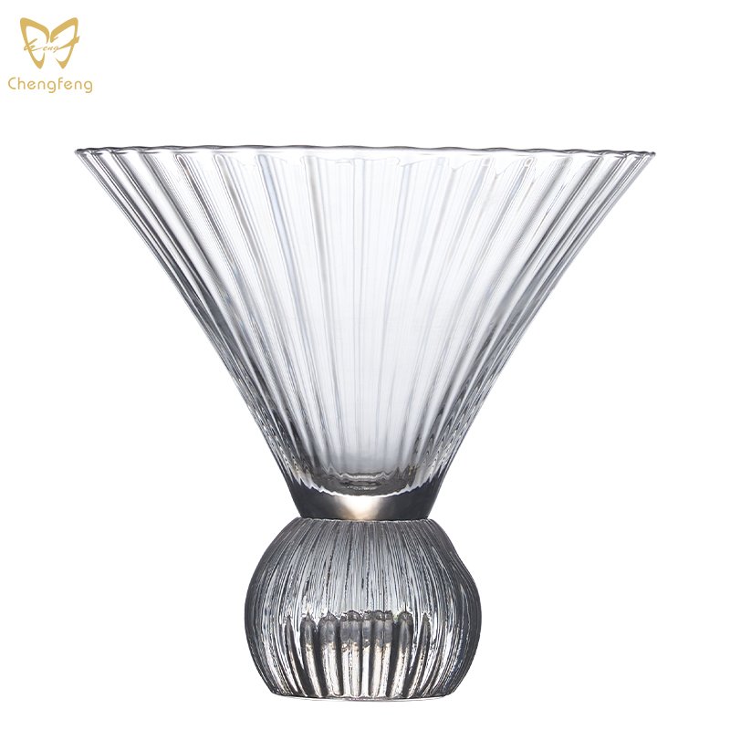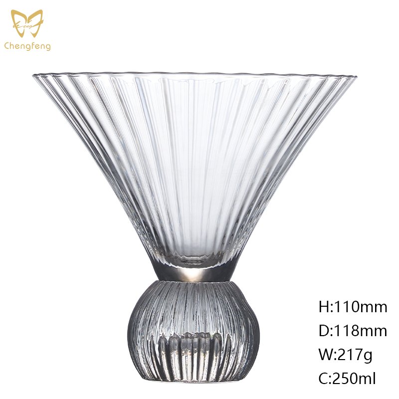 GT1330 250Ml Unique Round Base Ribbed Cocktail Martini Glasses