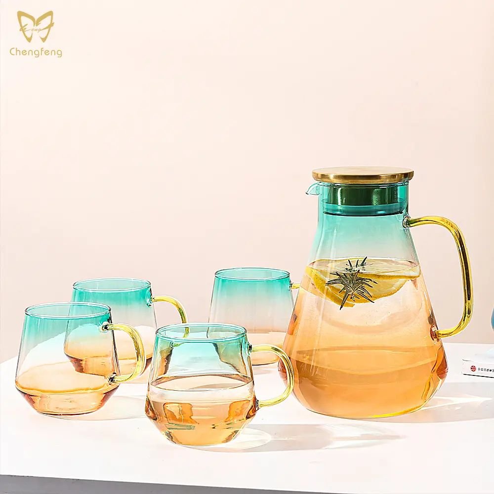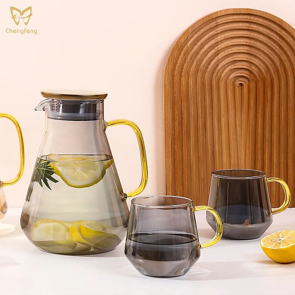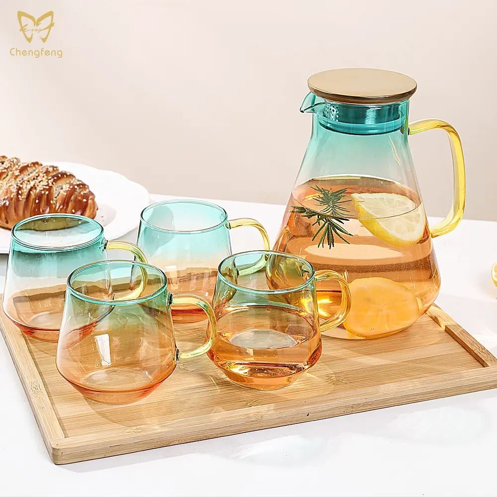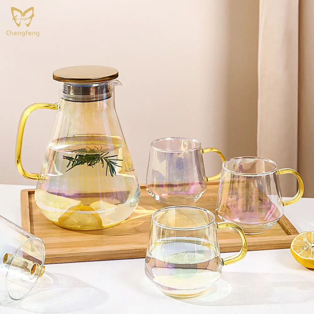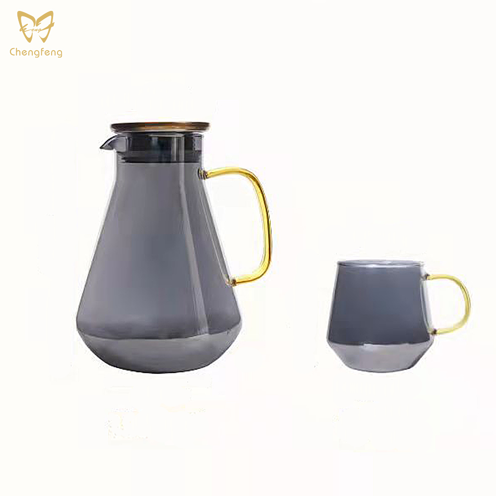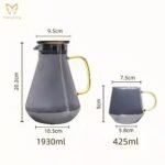 A 1.9L volume water jug is just perfect for your restaurant that serves 8 guests an 8 oz drink at one time. Surely you want to avoid the situation where your guests are out of drinks in minutes and get upset when your staff is too busy to get them a refill during peak hours of the day. Do not upset your guests! What says modern other than the cone-shaped water jug? It is the fact that it is coupled with a golden transparent glass handle and a bronze metal color cap. It is also easy to store inside the cupboard for its 22 cm height which is just about right. Other than the jug itself, there are also mugs to complete the set. These 315 ml mugs set surely offer enough mugs for a family of four. Other than family use, having these utensils well prepared in your meeting room will impress your guest. No one will feel satisfied looking at the plain, blended colorless water jug. Five more different colors to offer you options when you want your water jug matches the decor. Ash gray for the offices, Amber for the antique shop, Rainbow for the artist, Sunset for the wild, and Ocean for the adventurer. The water jug strictly uses lead-free crystal glass for production, saving you the wary feeling from every sip out of the cup, enjoying your drinks to the fullest.