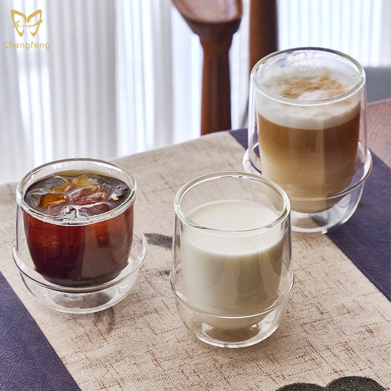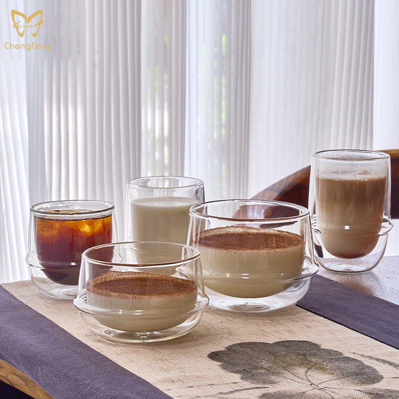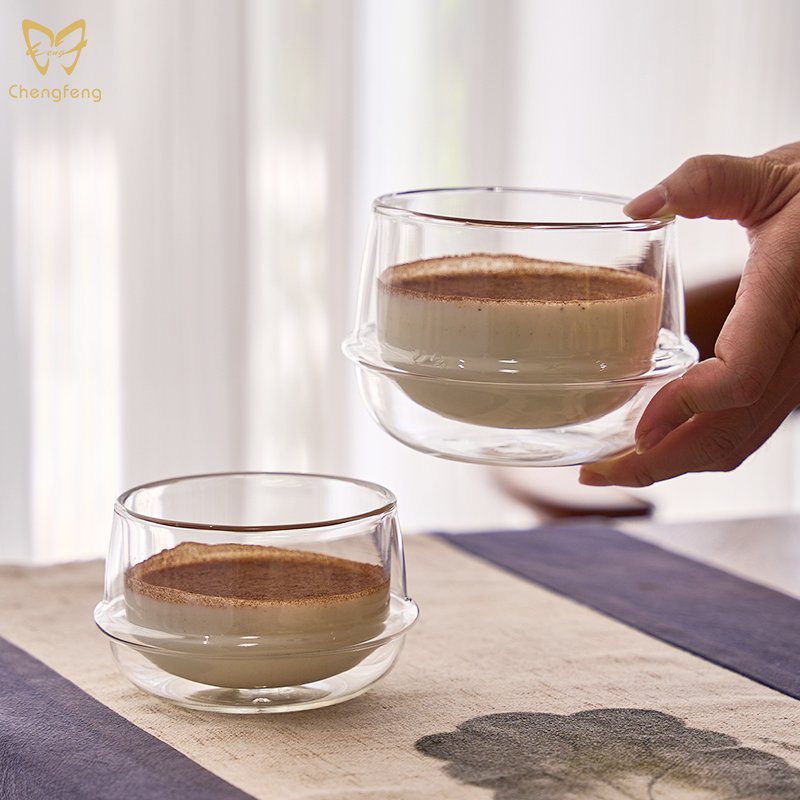 Multi-Capacity Modern Double Wall High Borosilicate Glass Cup Flying Saucer Coffee Glass Insulated Thermal Cups Drinking Glasses