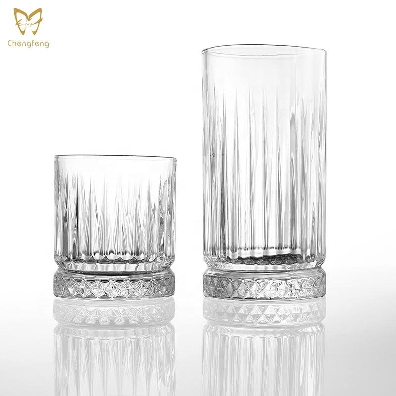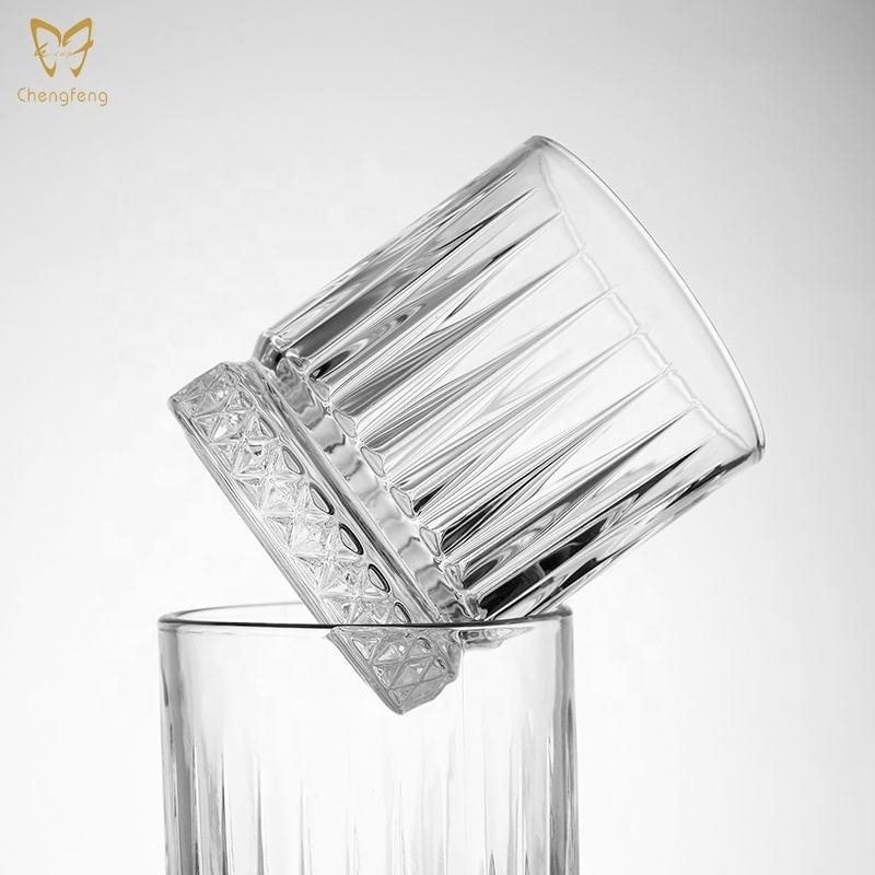 WG1234 Classic Vertical-Striped Highball Lowball Old Fashioned Whiskey Glass