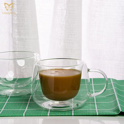 KG1202 9oz OEM Double Wall Borosilicate Coffee Handle Glass